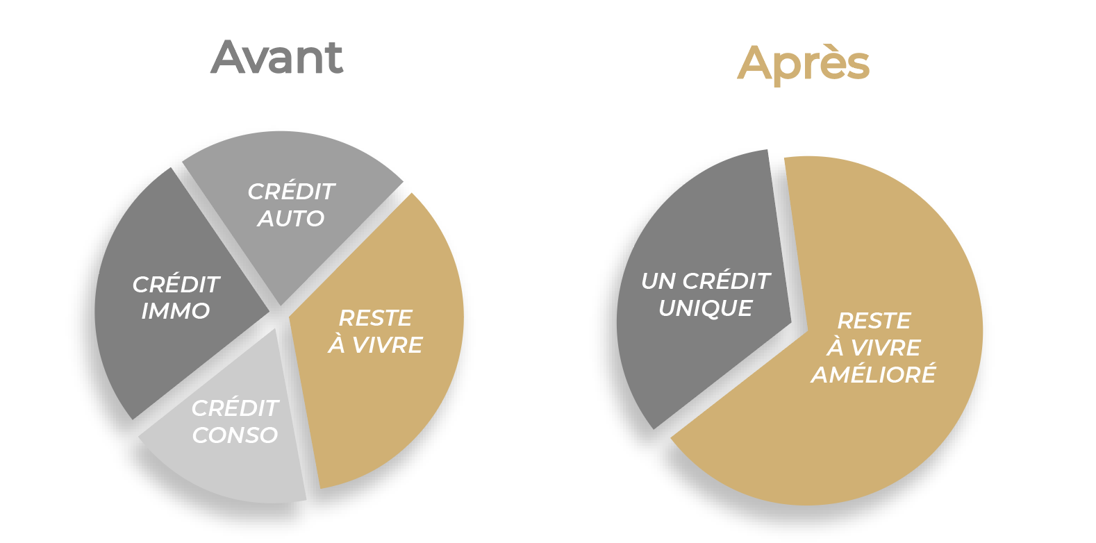 Le nouveau taux et la nouvelle durée de votre regroupement de crédits détermineront vos nouvelles mensualités et vous permettront ainsi de retrouver un reste à vivre plus important.